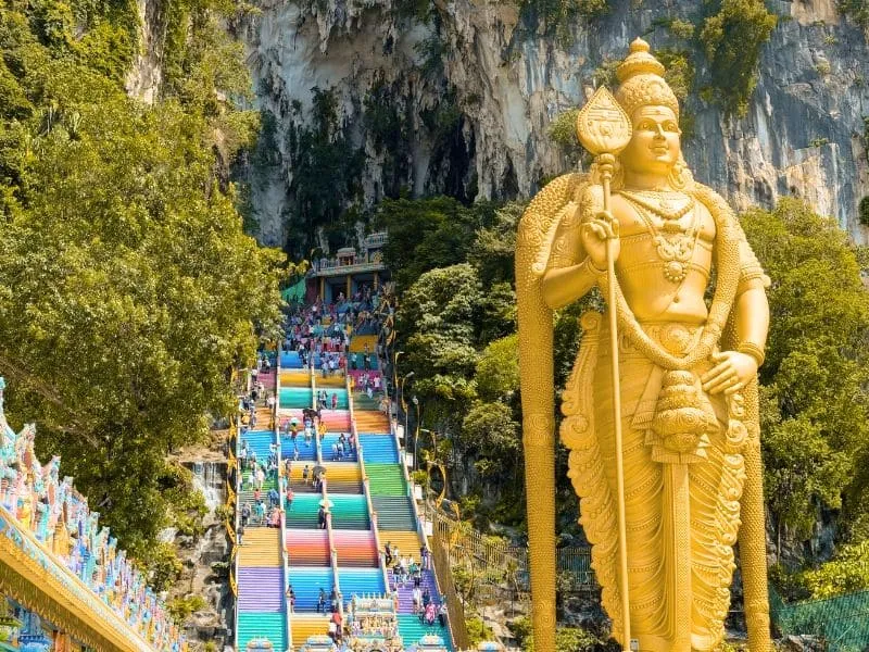 - Động Batu, thánh địa của cộng đồng người Malaysia gốc Ấn, chiêm ngưỡng bức tượng Hindu cao nhất châu Á và chinh phục 272 bậc thang.